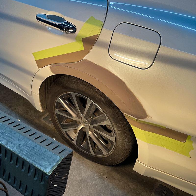 ボディの下地処理には、ポリッシャーと呼ばれる専用の機械を使用します。先端が回転することで、手作業よりも短時間で効率的にボディを磨き上げることができますが、一方で扱いに慣れていない人が扱えば、かえってキズをつけてしまったり、同じ場所を過度に磨きすぎると塗装面を痛めてしまうというデメリットも。